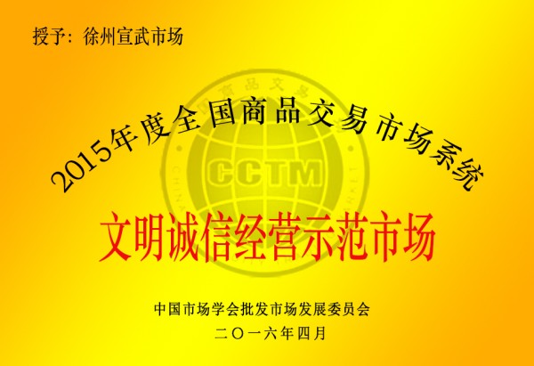 日前,第十七屆中國(guó)商品交易市場(chǎng)發(fā)展論壇在北京舉行。會(huì)上,公司被中國(guó)市場(chǎng)學(xué)會(huì)批發(fā)市場(chǎng)發(fā)展委員會(huì)授予2015年度全國(guó)商品交易市場(chǎng)系統(tǒng)“文明誠(chéng)信經(jīng)營(yíng)示范市場(chǎng)”稱號(hào)。公司黨委書記、董事長(zhǎng)、總經(jīng)理李旭昇獲全國(guó)商品交易市場(chǎng)發(fā)展功勛人物稱號(hào)。